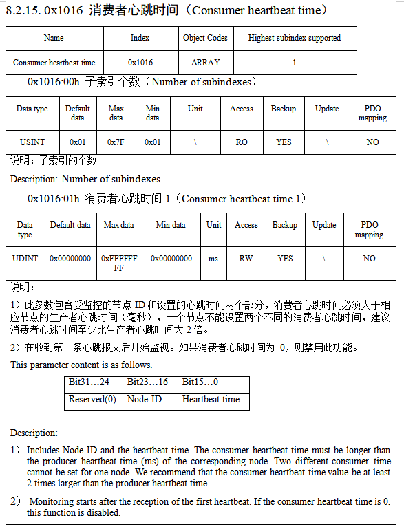 Amendment: Revise the description of object 0x1016 "Consumer Heartbeat Time" in the object dictionary.