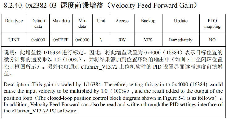 Addition: In Chapter 8, add an explanation for object 0x2382-03h "Speed Feedforward Gain" in the object dictionary.