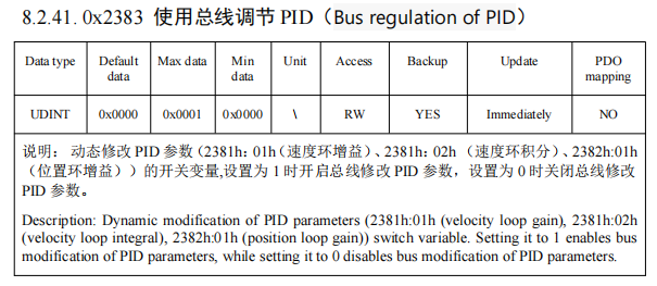 Addition: In Chapter 8, add an explanation for object 0x2383 "Use Bus Regulation PID" in the object dictionary.