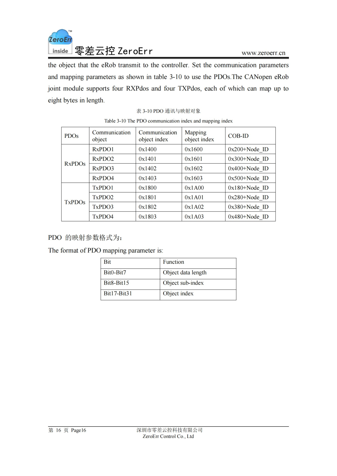 Addition: Add an explanation of PDO mapping length and corresponding COB-ID to Chapter 3.7.