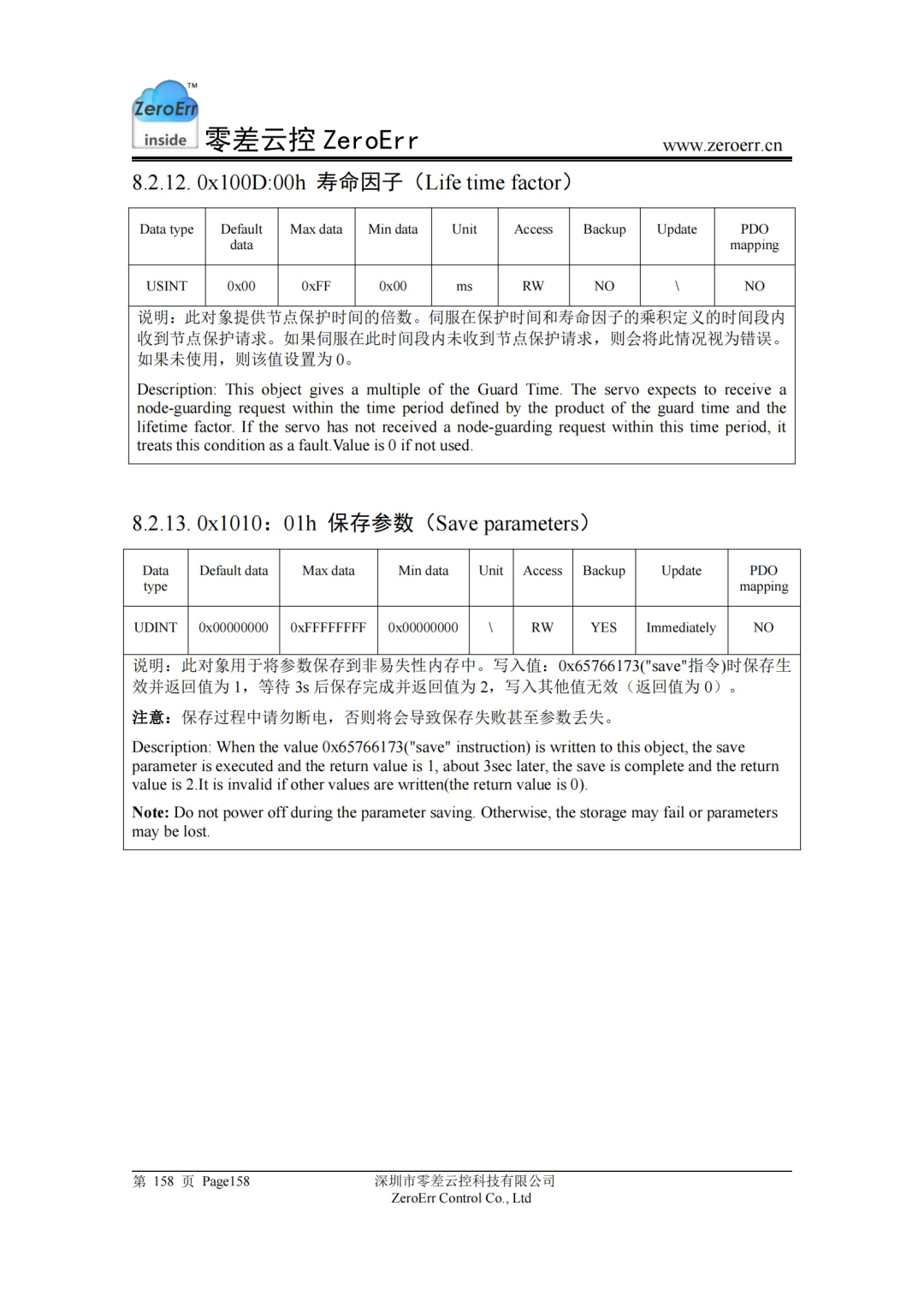 Modification: Improve the explanation of Object Dictionary 0x1010 and 0x4602 in Chapter 8.