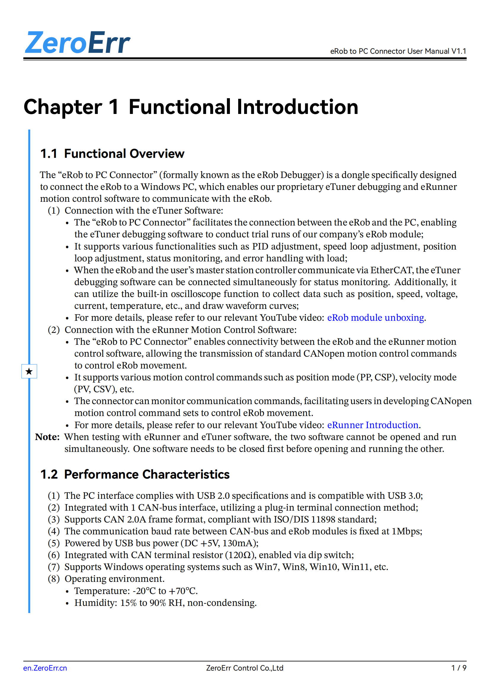 eRob to PC Connector User Manual Update Release(V1.1)