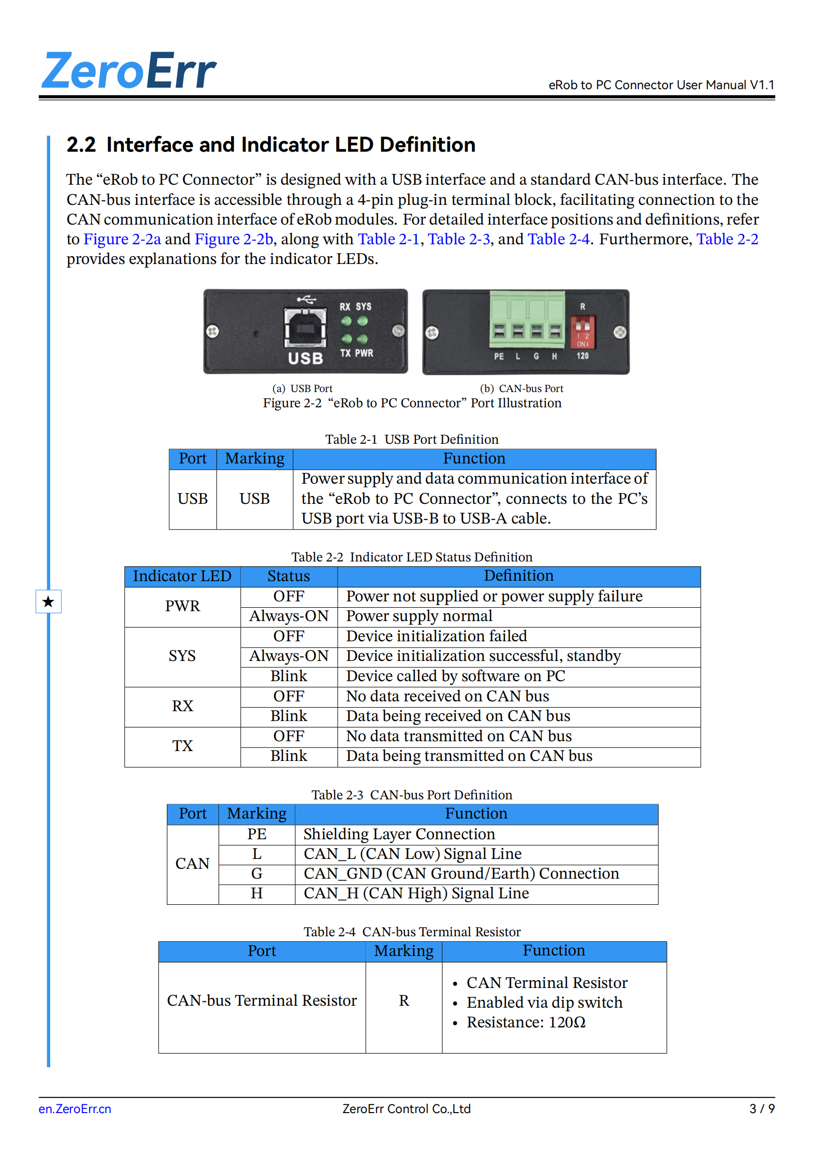Change the cover title from "eDriver-USBCAN Debugger User Manual" to "eRob to PC Connector User Manual," and update the image with the latest photo.
