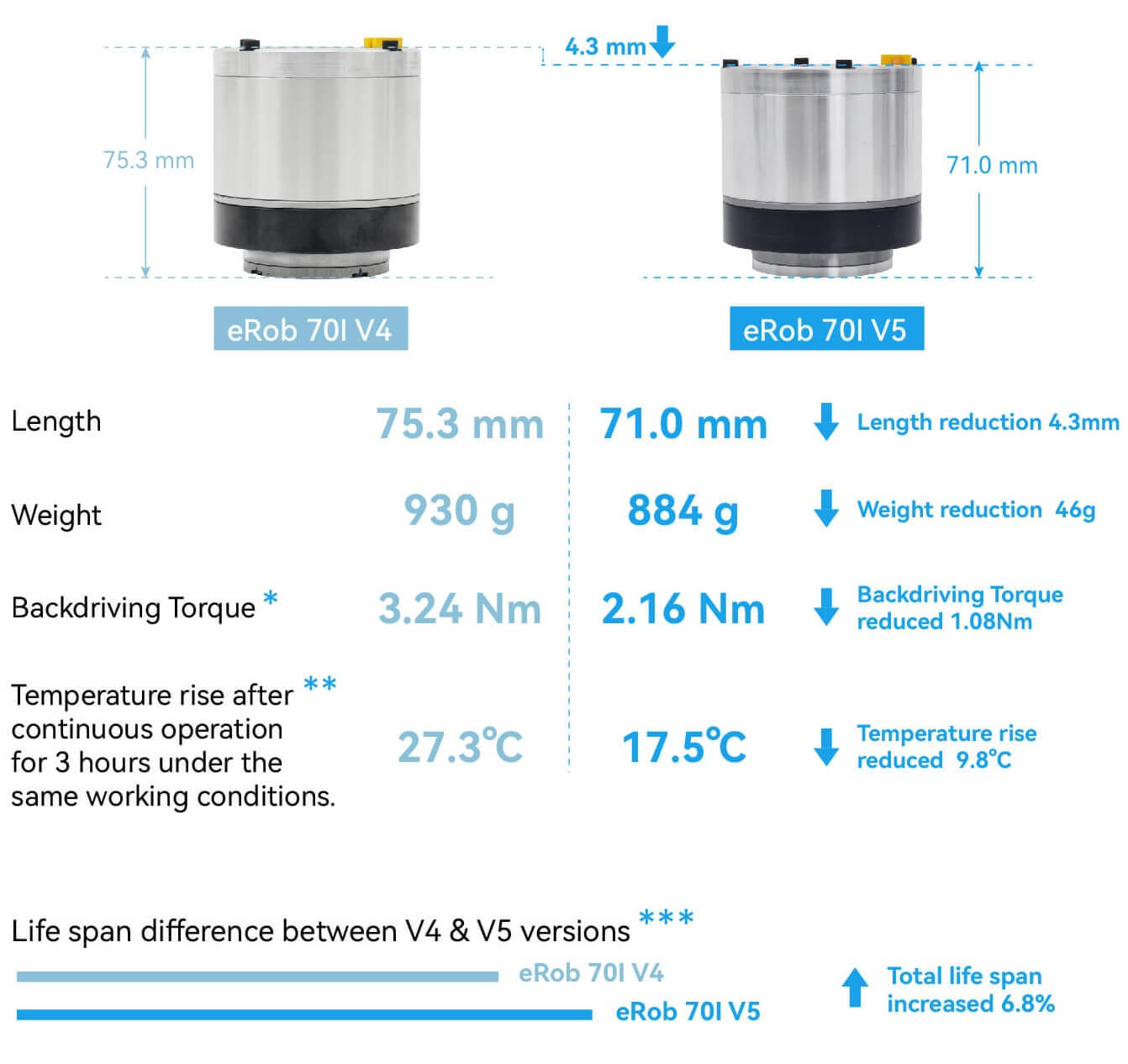 Due to the reduced weight of the eRob rotary actuators on J4, J5, and J6, the load exerted on J4 is decreased, thereby increasing its life span. A sample calculation is shown below: